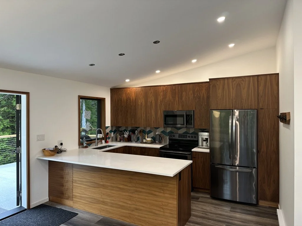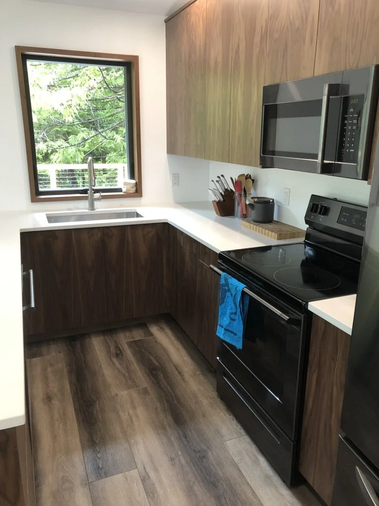Designed and Built by Erik More Design, including custom designed black walnut cabinetry as well as custom window and door trim to match.